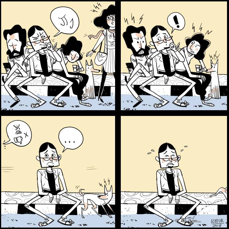 এই কার্টুনগুলো দেখলে সহজেই অনুমেয় হয় সমাজের ভঙ্গুর দিকগুলো। শিল্পী বোঝাতে চেয়েছেন অন্যায় যার লজ্জাও তার। একজন নারী এসে বলতে পারে, রুখে দিতে পারে। আবার দেখা যায় সমাজে বড়োদের দেখেই ছোটোরা শিখছে, বড়োদের অপকর্ম যেন কোনক্রমেই ছোটোদের মধ্যে বিরূপ প্রতিক্রিয়া সৃষ্টি করতে না পারে। কার্টুন চিত্রে উঠে এসেছে গণপরিবহনে কিংবা জনাকীর্ণ পরিবেশে কীভাবে নারীকে হয়রানির শিকার হতে হয়। কিন্তু কেন? আসলে একজন মানুষের মানসিকতাই তার বড়ো পরিচয়। ছাত্র-পেশাজীবী-কর্মজীবী প্রতিটি মানুষই নারীর প্রতি ভালো আচরণ করতে পারে, বদলে দিতে পারে পৃথিবী।