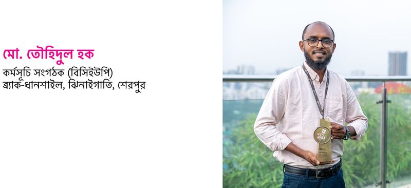 মো. তৌহিদুল হক ২০২২ সালে শেরপুর জেলার ঝিনাইগাতি উপজেলার ধানশাইল শাখায় ব্র্যাক মাইক্রোফাইন্যান্স প্রোগ্রামে যোগদান করেন। তৌহিদুল ভাইয়ের পরশপাথর একই অফিসের শাখা ব্যবস্থাপক, মো. জাহিদুল ইসলাম। চাকরিতে যোগদানের প্রথমদিন জাহিদুল ভাই বলেছিলেন, ‘এমন কোনো কাজ নেই, যা মানুষ করতে পারে না। এজন্য প্রয়োজন সততা, কঠোর পরিশ্রম এবং প্রবল ইচ্ছেশক্তি।’ কথাগুলো শুধু সেদিন নয়, এখনও তাকে আত্মবিশ্বাসী করে তোলে।