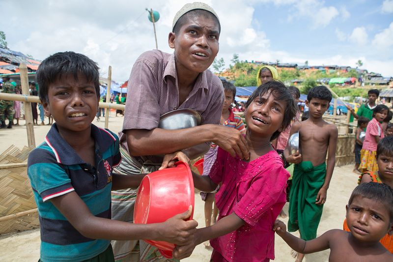 ধরা যাক, থাইংখালি অস্থায়ী আবাসের কথা। দুপুরের খাবারের সময় কেউ যদি ওখানে অবস্থান করেন তাহলে তাকে প্রত্যক্ষ করতে হবে কিভাবে হাজার হাজার মানুষ একসাথে ছুটে যাচ্ছে খাবারের লাইনের দিকে। বলা যেতে পারে, ওই আবাসে থাকা ২০,০০০ মানুষ একসাথেই ছুটতে থাকে। দৃশ্যটি আরও করুণভাবে আপনার চোখে ধরা দেবে যখন আপনি অবাক হয়ে লক্ষ্য করবেন যে এদের বেশির ভাগই শিশু। ওদের অনেকেই শেষ খেয়েছে গতকাল এ সময়েই। ছোট্ট পেট, দুপুরে খেলে বিকেলেই ক্ষিদে পাবার কথা। পায়ও। কেউ হয়ত বাবা মা’র কাছে চায়, কারো চাওয়ার মতই কেউ নাই। তাইতো এত তীব্র ক্ষুধা নিয়ে ওরা ছুটে যায়; আধুনিকতা, সভ্যতা, আলোকিত বিবেক এসব কিছুর মাথা এসময় হেঁট হয়ে যায়। শিশুদের মধ্যে কারো কারো দৌড়ানোর সময় বাশের বেড়াও ডিঙ্গানো লাগে না, ওরা যে সেটার নিচ দিয়েই চলে যেতে পারে।