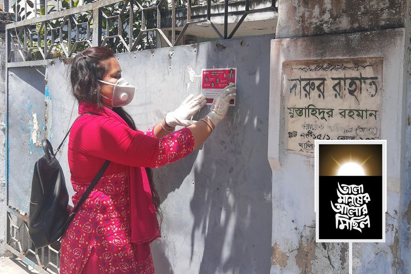 শুরু থেকে এখন পর্যন্ত করোনা মহামারি প্রতিরোধে ব্র্যাক যেসব উদ্যোগ গ্রহণ করেছে, সেখানে আমাদের ছিল সক্রিয় অংশগ্রহণ। সাধারণ মানুষকে করোনাভাইরাস সম্পর্কে সচেতন করতে আমরা বিলি করেছি ১২,০০০ লিফলেট। মানুষের ঘর থেকে ঘরে, দোকানে, ফার্মেসিতে, হাসপাতালে, থানায়- প্রতিটি জায়গায় আমি ও আমার কর্মীরা গিয়ে গিয়ে এই রোগের ভয়াবহতা সম্পর্কে বোঝাতে সাধ্যমতো চেষ্টা করেছি। প্রচারণার প্রত্যেকটি উপায়কে আমরা কাজে লাগাচ্ছি। কোনো দিক থেকেই যেন ঘাটতি না থাকে।