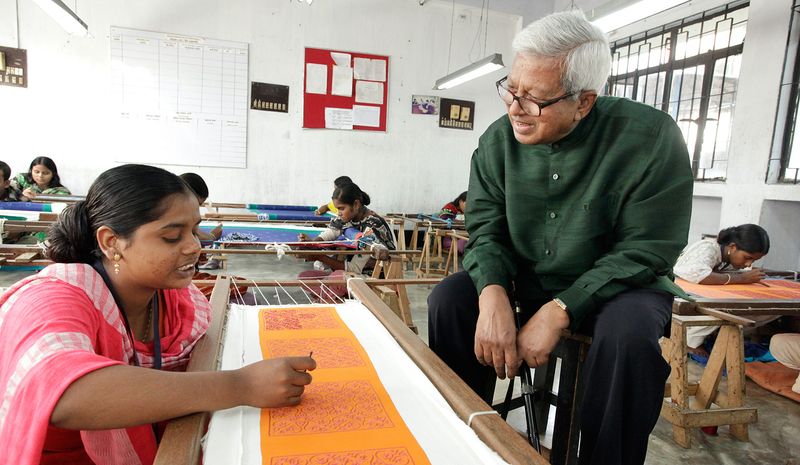 ‘আমাদের আরেক গৌরবময় ঐতিহ্য নকশিকাঁথা। এই ঐতিহ্যটিও বিলুপ্তির পথে এগিয়ে গিয়েছিল। কাঁথা বলতে আমরা বড় বড় সেলাইয়ের কাঁথা বুঝতাম। গত তিনশ বছর ধরে আমাদের দেশে যে নকশিকাঁথা তৈরি হয়েছে, সেগুলোর মোটিফ এবং ফোঁড় হারিয়ে গিয়েছিল। আমরা এগুলো অনুসন্ধান শুরু করলাম। এক পর্যায়ে গিয়ে দেখলাম, পৃথিবীর বিখ্যাত জাদুঘরগুলো জামদানির মত আমাদের নকশিকাঁথাও সংরক্ষণ করে রেখেছে। ফোক মিউজিয়াম বোস্টন, মিউজিয়াম শিকাগো–এসব স্বনামধন্য জাদুঘরে রয়েছে আমাদের নকশিকাঁথা। আমরা নকশিকাঁথাগুলোরও ছবি তুলিয়ে নিয়ে এলাম। শিল্পীদের দিয়ে অসাধারণ সেই নকশাগুলো আবার আমরা আঁকিয়েছি। শিল্পীরা কাগজের উপর নকশাগুলো করে দিয়েছেন। সুরাইয়া নামের একজন শিল্পী প্রথমে আমাদের সঙ্গে এ বিষয়ে দু মাস কাজ করেছেন। সেগুলো মহিলাদের দিয়েছি। কাগজে করা নকশাগুলো তারা সুচের ফোঁড়ে ফুটিয়ে তুলেছেন কাঁথায়। এভাবে আমরা হারিয়ে যাওয়া মোটিফগুলো ফিরিয়ে এনেছি।’