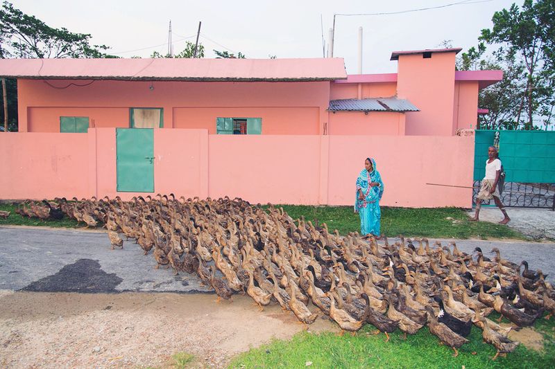 বানুমতির মতো তার গ্রামের আরও অনেক নারীই মায়ের মমতায় হাঁসপালন করছেন। একটু অদ্ভুত দেখতে হলেও প্রতি সন্ধ্যায় বাংলাদেশের উত্তর-পূর্ব প্রান্তে দলবেধে হাঁসেদের এই ঘরে ফেরার মিছিল এখন আর তেমন অপরিচিত নয়। যাকে আরও অসাধারণ করে তোলে নানা রঙের শাড়িতে এই মিছিলগুলোর নেতৃত্ব থাকা একেকজন গর্বিত, আত্মবিশ্বাসী নারী।