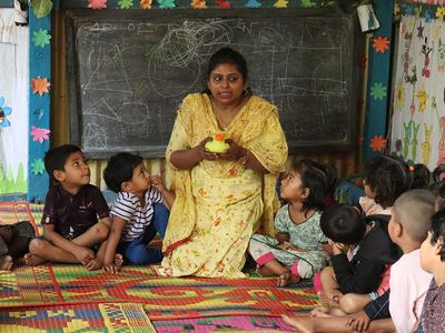 BRAC has championed Early Childhood Development for decades. Our flagship Play Lab initiative helps children learn and heal through play. BRAC’s Play Labs provides children aged 3-5 with high-quality play-based learning through a low-cost, culturally relevant, sustainable model in low-resource and humanitarian settings.