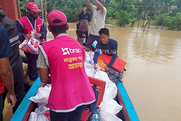 BRAC workers are actively evacuating people trapped by floodwaters to safe shelters, providing crucial assistance and standing by those in need. Field operations have already commenced in the flood-affected districts to assess the damage and deliver urgent aid.