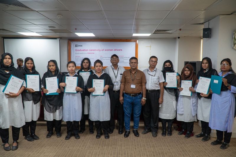 Eleven women have been awarded the certificates as professional drivers after successfully completing their training at the BRAC Driving School. These women are now confident in their hard-earned skills. They said this achievement has come through their indomitable spirit and the high-quality driving training programme run by BRAC, one of the largest development organisations in the world.